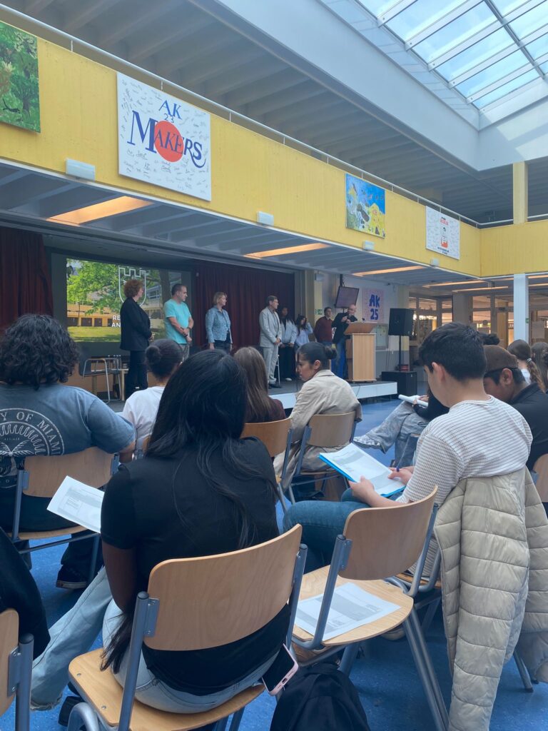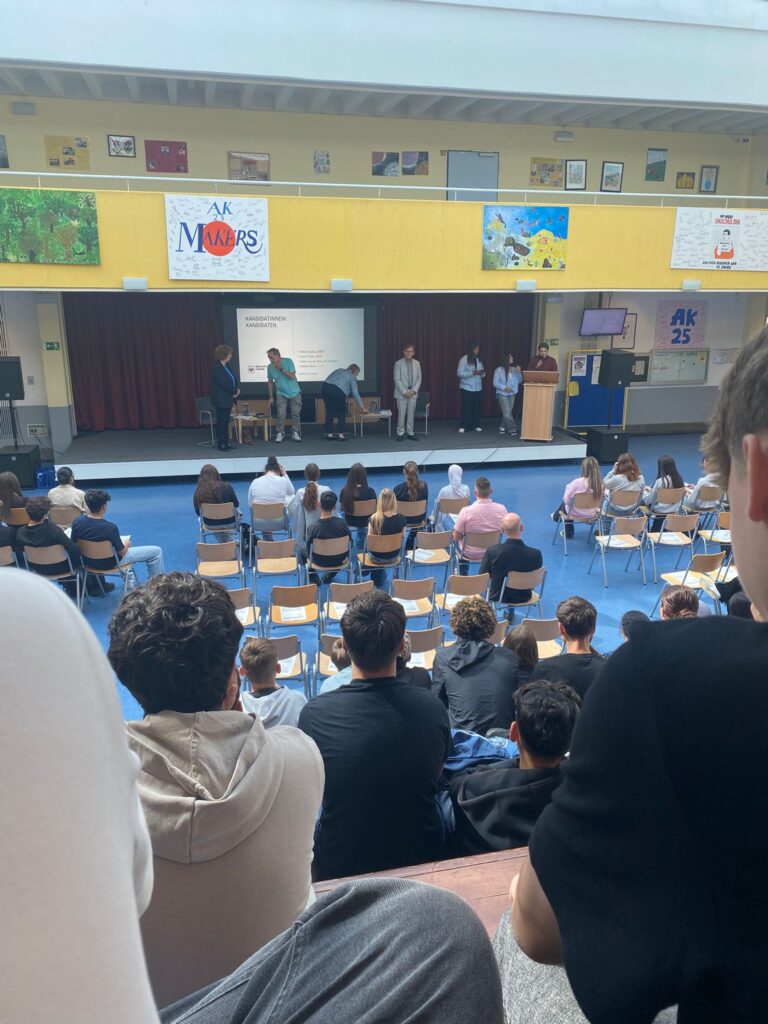 „Die Veranstaltung hat uns Jugendlichen gezeigt, dass wir eine wichtige Stimme in der Stadt haben“, sagt Estelle Koitka (10c). Insbesondere für die Schülerinnen und Schüler, die dieses Jahr zum ersten Mal selbst wählen dürfen, war der Austausch eine große Hilfe bei ihrer eigenen Wahlentscheidung. „Als Schülersprecher freut es uns, dass die Kandidatinnen und Kandidaten in die Schule gekommen sind und uns gezeigt haben, dass unsere Anliegen gehört werden. In Zeiten, in denen die Demokratie angegriffen wird, ist es umso wichtiger, dass wir uns einbringen und mitdiskutieren“, so Zümra Kocyigit und Alexander Moser.