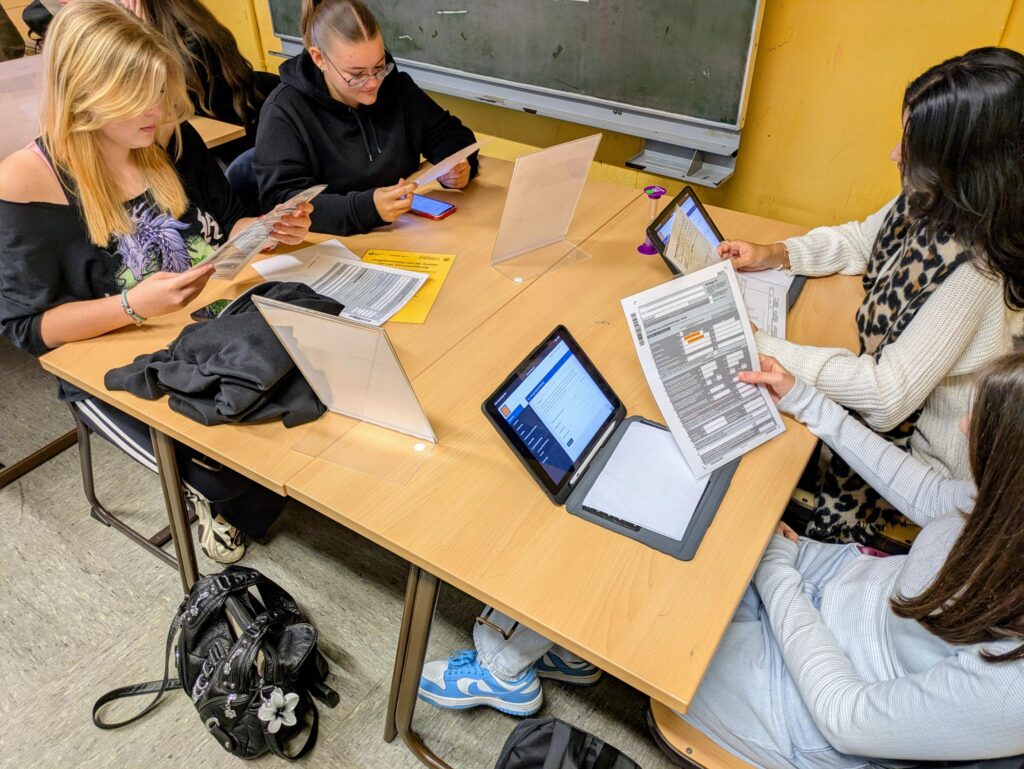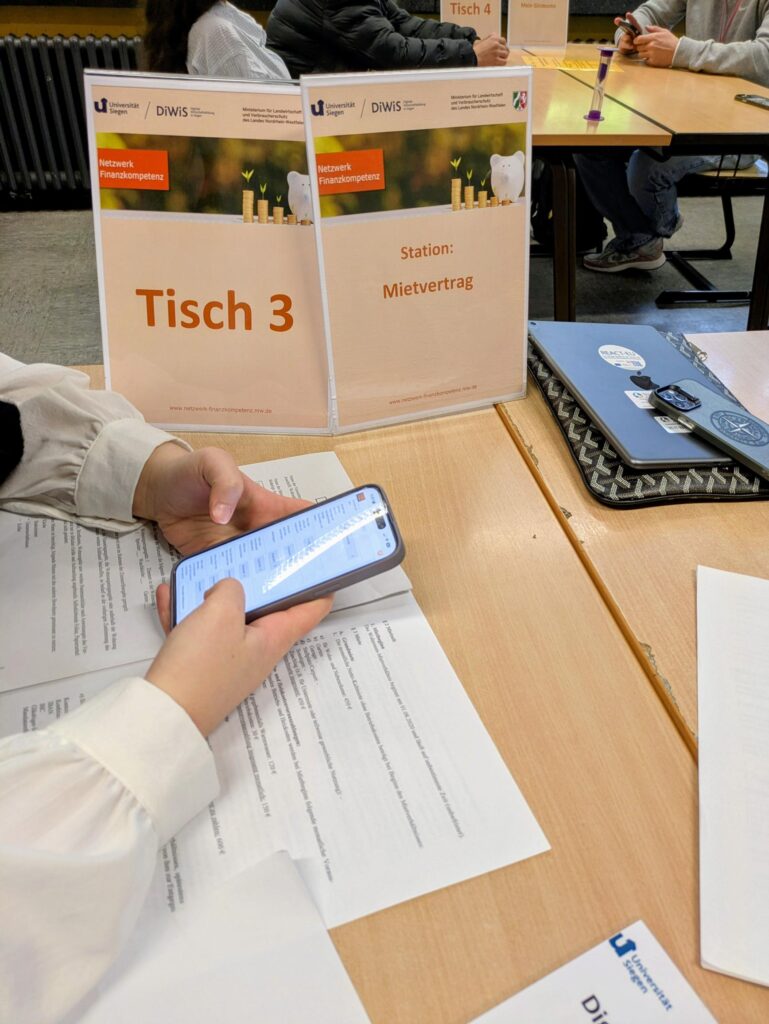 Nach einer kurzen Auftaktveranstaltung in der Mensa, bei der die Zehntklässler auf den Tag eingestimmt wurden, ging es in Kleingruppen an die Arbeit: In drei Klassenräumen waren sechs abwechslungsreiche und interaktive Lernstationen aufgebaut, an denen zentrale Themen rund um das Thema „Finanzen im Alltag“ behandelt wurden. Die Teilnehmenden setzten sich durch Nutzung von digitalen Endgeräten unter anderem mit dem Aufbau eines Girokontos, der ersten Steuererklärung oder den Grundlagen eines Mietvertrags auseinander – alles Inhalte, die ihnen im späteren Leben begegnen werden.